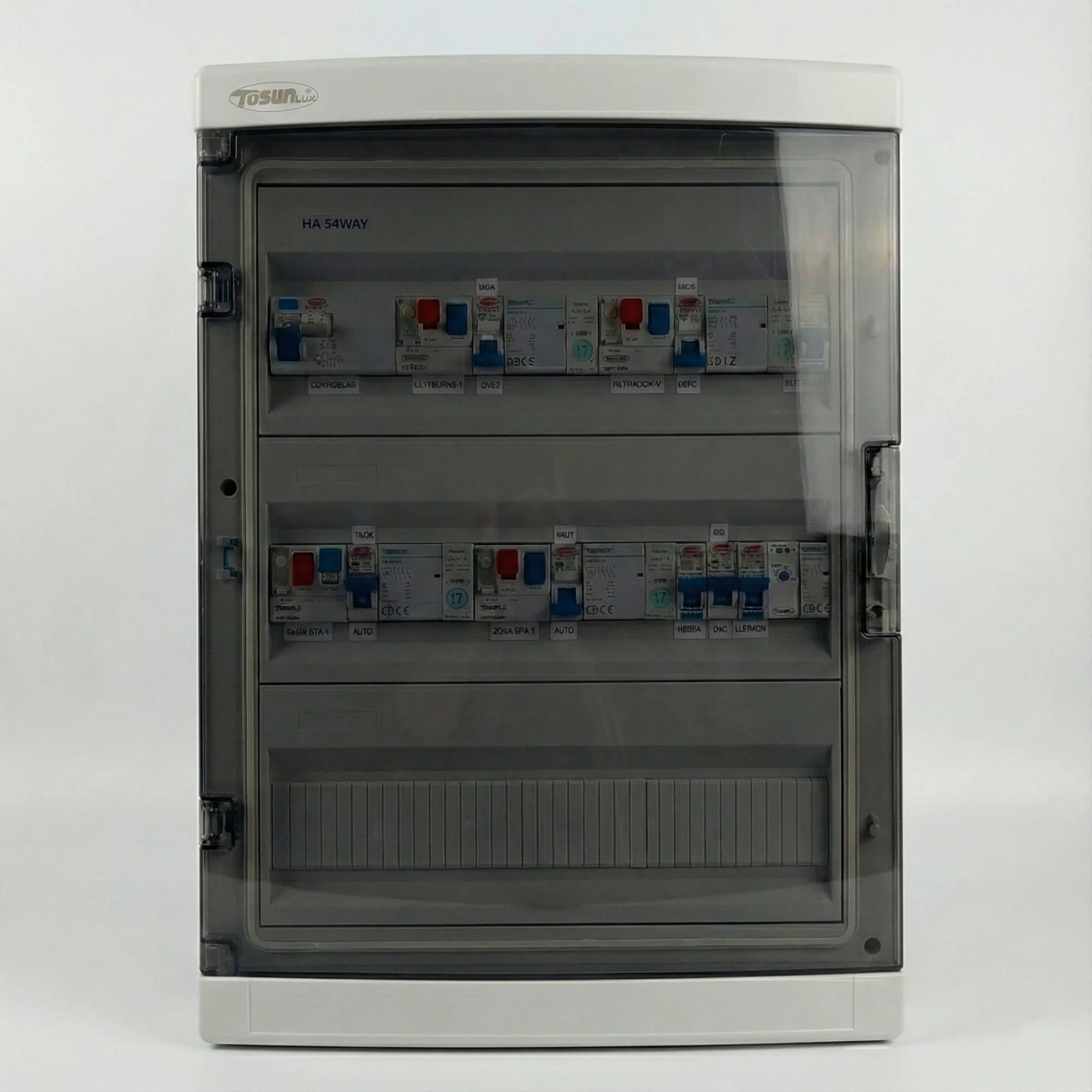Olvídate de comprar cajas vacías y componentes sueltos para montarlos en obra. Nosotros nos encargamos de todo el trabajo sucio: diseño, montaje, cableado interno y pruebas de calidad.
