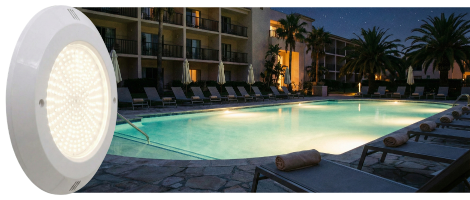- Montaje Directo: El proceso es muy sencillo; una vez retirada la luz antigua, la nueva luminaria se aloja y asegura directamente en el interior del nicho existente. No es necesario realizar obras, taladros nuevos ni modificaciones en la pared de su piscina.