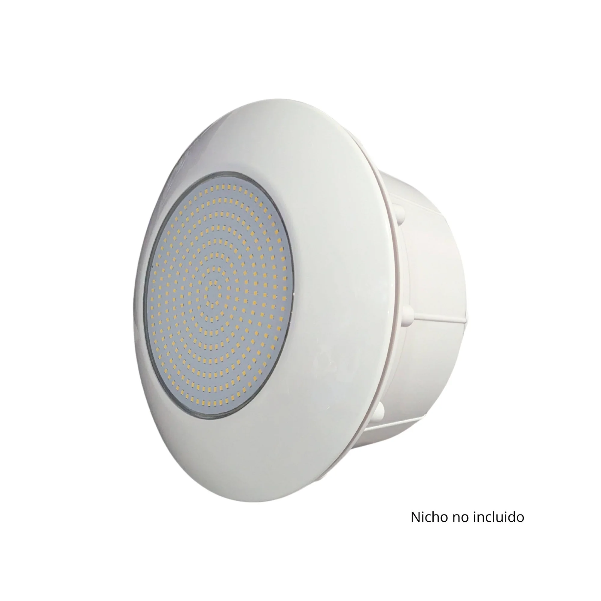 - Montaje Directo: El proceso es muy sencillo; una vez retirada la luz antigua, la nueva luminaria se aloja y asegura directamente en el interior del nicho existente. No es necesario realizar obras, taladros nuevos ni modificaciones en la pared de su piscina.