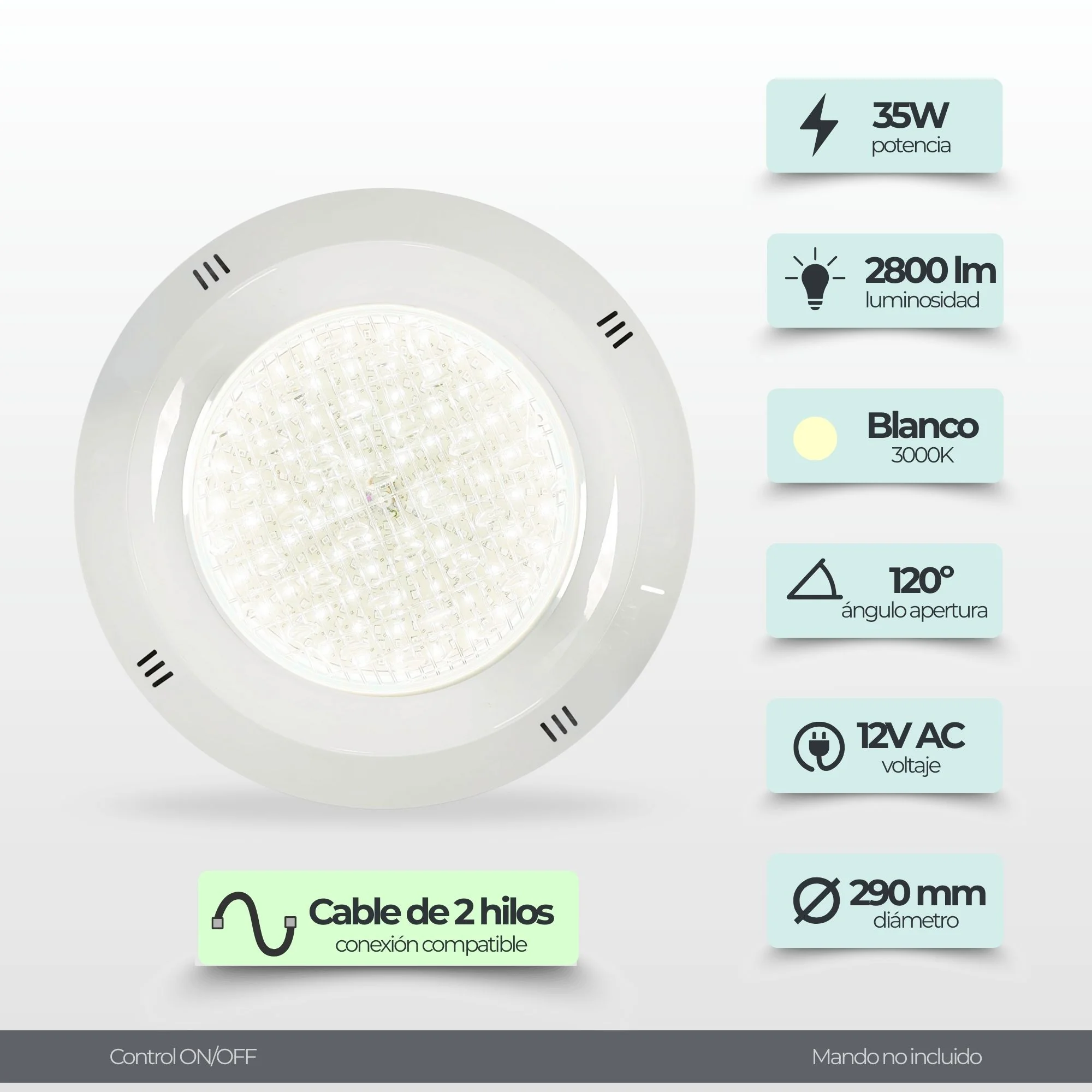 Este foco funciona mediante sistema ON / OFF, permitiendo su encendido y apagado de forma sencilla desde el interruptor de los focos, un interruptor a pared o un control remoto compatible.