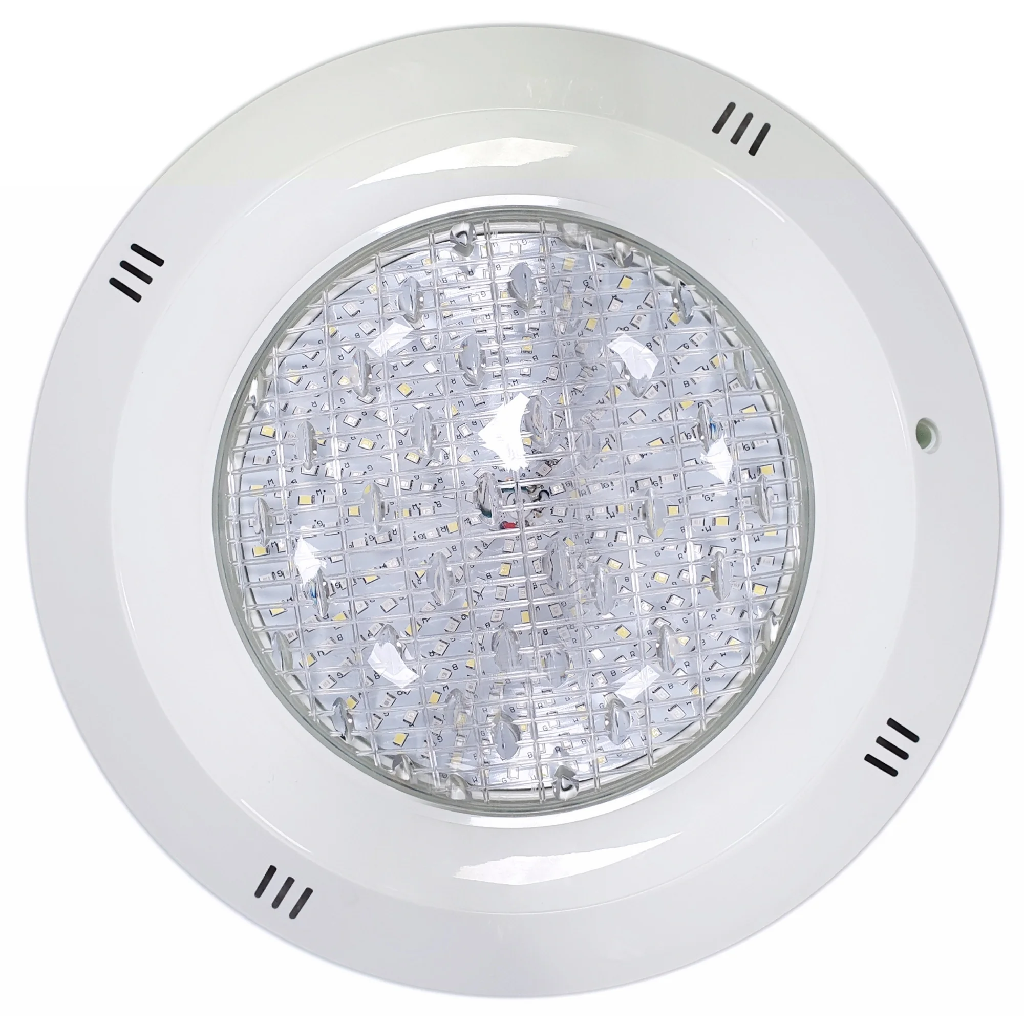 Este foco, en cambio, combina LEDs RGB con LEDs blancos dedicados 6000K, logrando una luz blanca fría pura, más uniforme y con mejor rendimiento energético. Así puedes disfrutar de colores para ambientar tus noches y de una luz blanca realmente nítida para ver el fondo y las escaleras de la piscina con total seguridad.