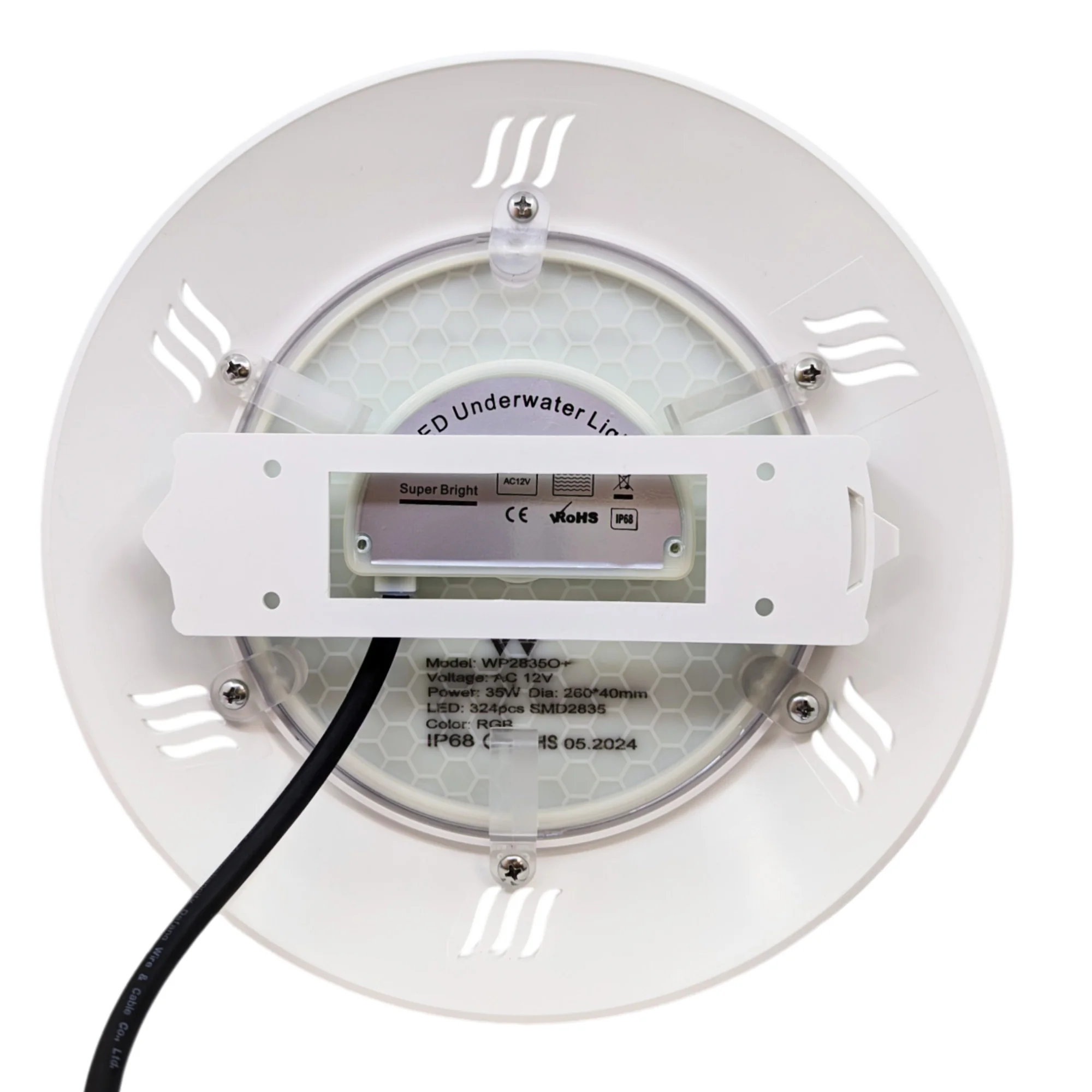 Fabricado con policarbonato de alta resistencia y protegido contra rayos UV, el foco está diseñado para soportar la exposición constante al sol y los productos químicos típicos del agua de piscina. Su certificación IP68 garantiza que puede permanecer sumergido sin riesgo de filtraciones, lo que asegura un funcionamiento fiable y prolongado en condiciones subacuáticas exigentes.