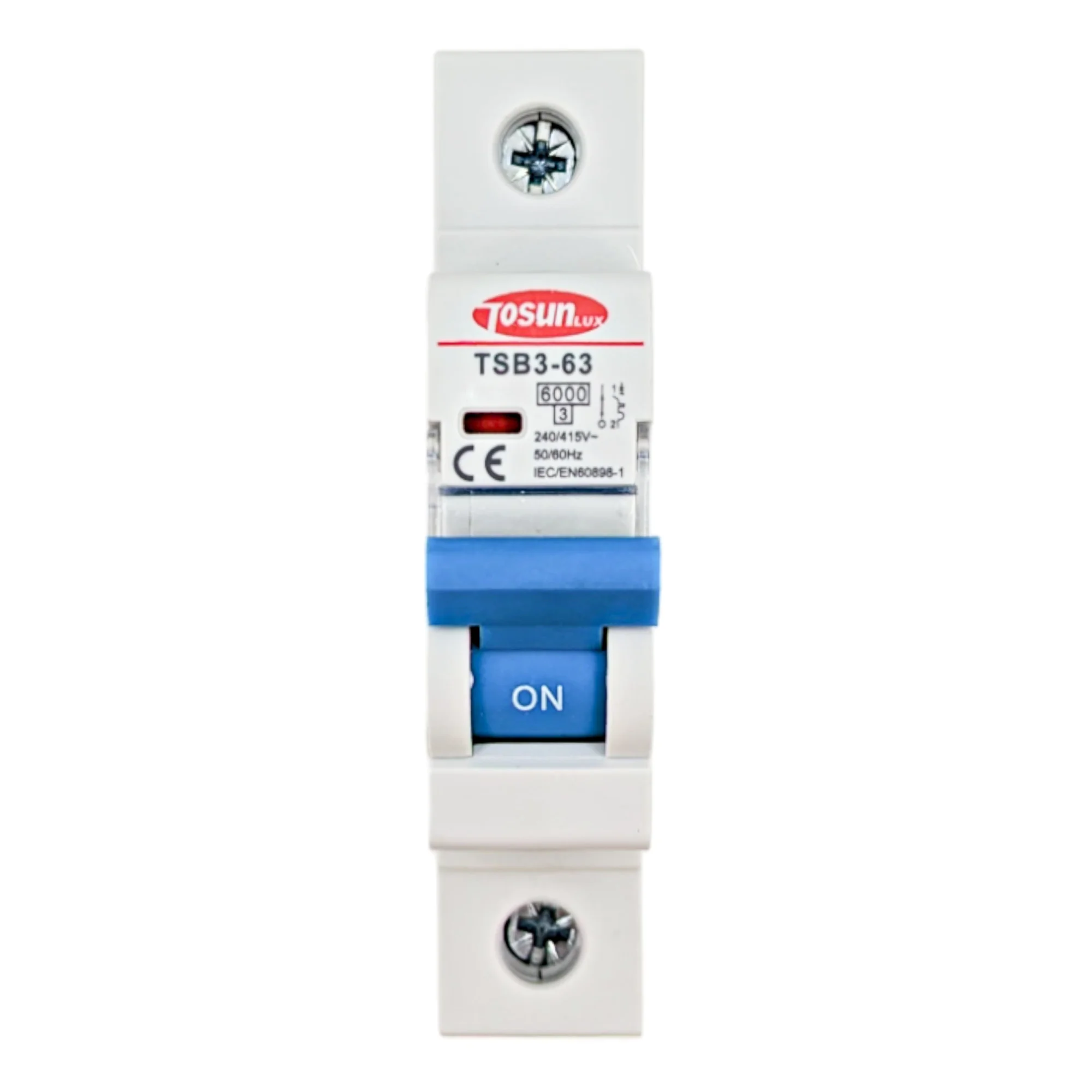 Con una capacidad de interrupción de 6kA, el TSB3-63 está preparado para afrontar condiciones adversas en entornos comerciales e industriales. Esta característica lo convierte en un elemento indispensable para sistemas que requieren un alto nivel de seguridad y fiabilidad.