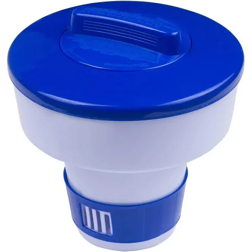 Dosificador flotante para pastillas de cloro, ideal para mantener el agua de tu piscina limpia y segura. Este dispositivo asegura una disolución constante y uniforme del cloro, garantizando una desinfección eficaz a la vez que evita el contacto directo con el cloro.