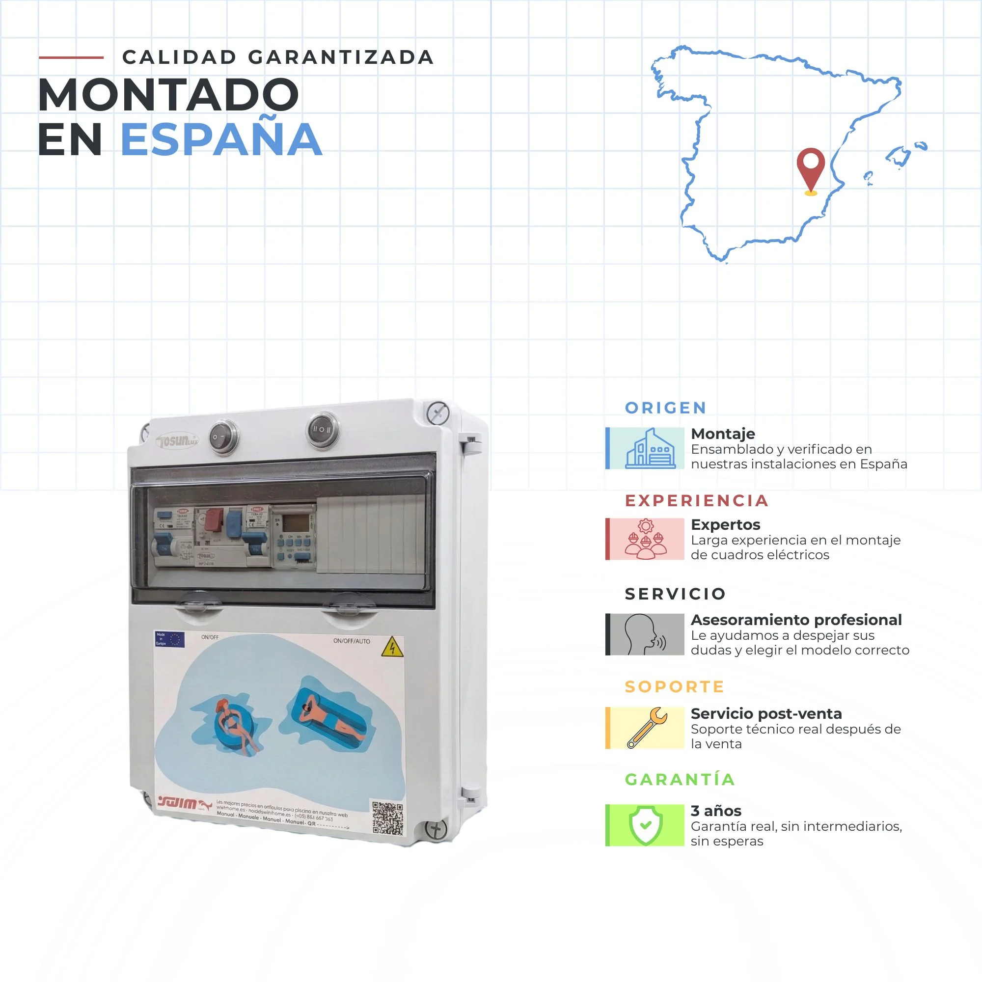 Tableau électrique avec transformateur 12V DC, spécialement conçu pour les systèmes d'éclairage des piscines. Ce tableau électrique est la solution idéale pour ceux qui recherchent l'efficacité, la sécurité et la polyvalence dans la gestion de l'éclairage et de la filtration de leur piscine.