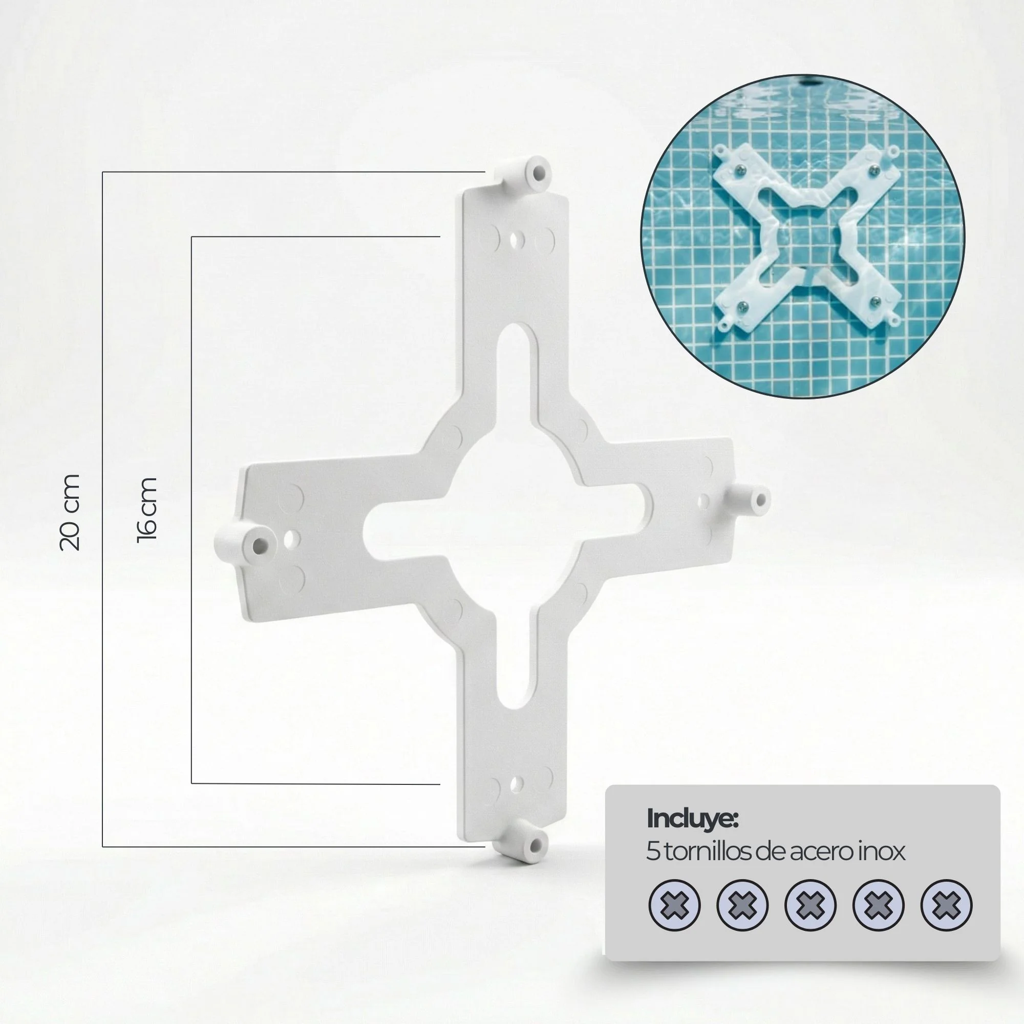 Eclairez votre piscine sans travaux. Projecteur LED de 35W (12V AC) monté en surface qui se visse sur la barre transversale standard. Changez-le sans vider la piscine et obtenez une lumière blanche claire 6000K avec 3 500 lm et IP68.