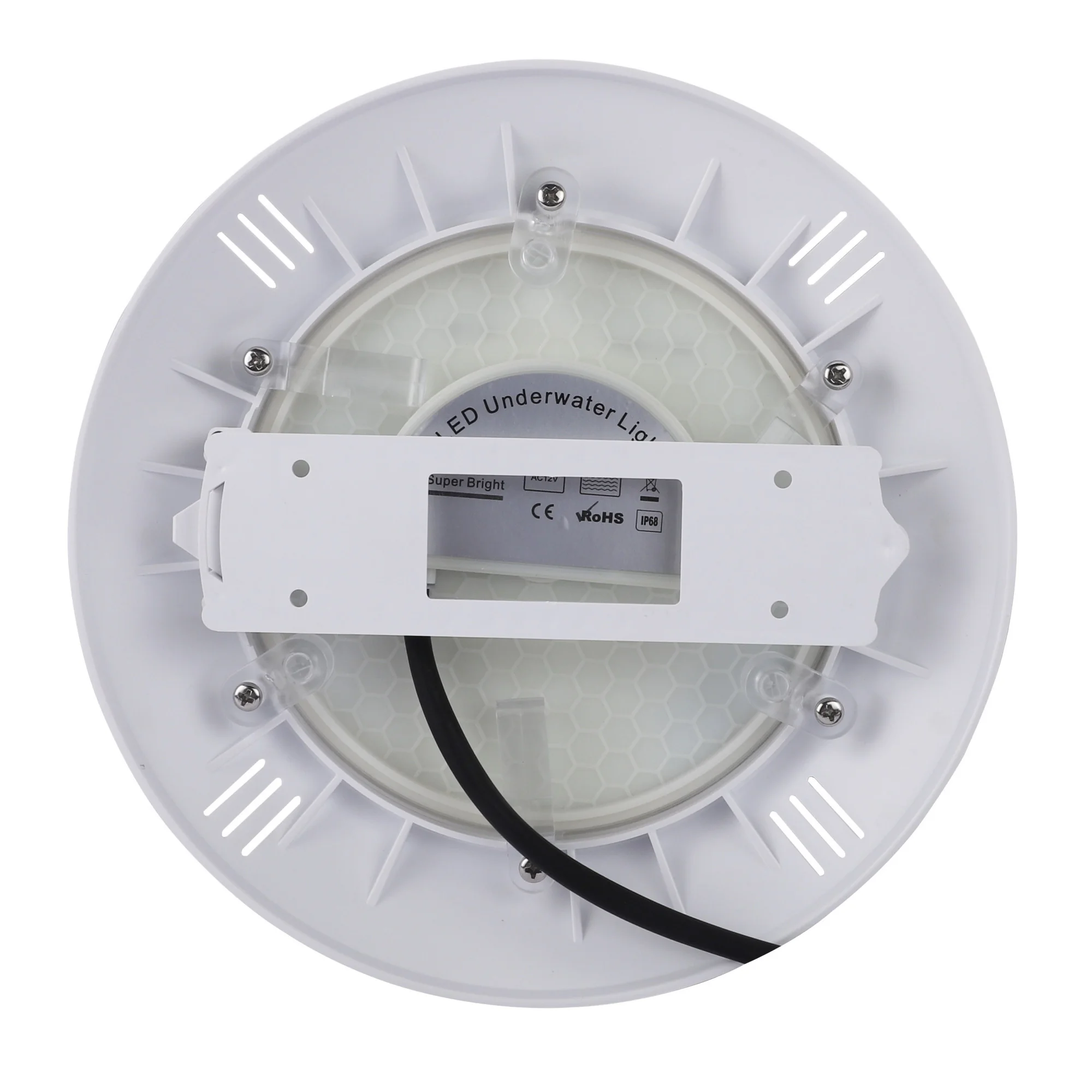 - Conception moderne et robuste : Sa structure plate et compacte remplie de résine époxy rend ce projecteur non seulement facile à installer sur n'importe quelle paroi de piscine, mais aussi résistant au vieillissement et complètement étanche, idéal pour les piscines d'eau salée.