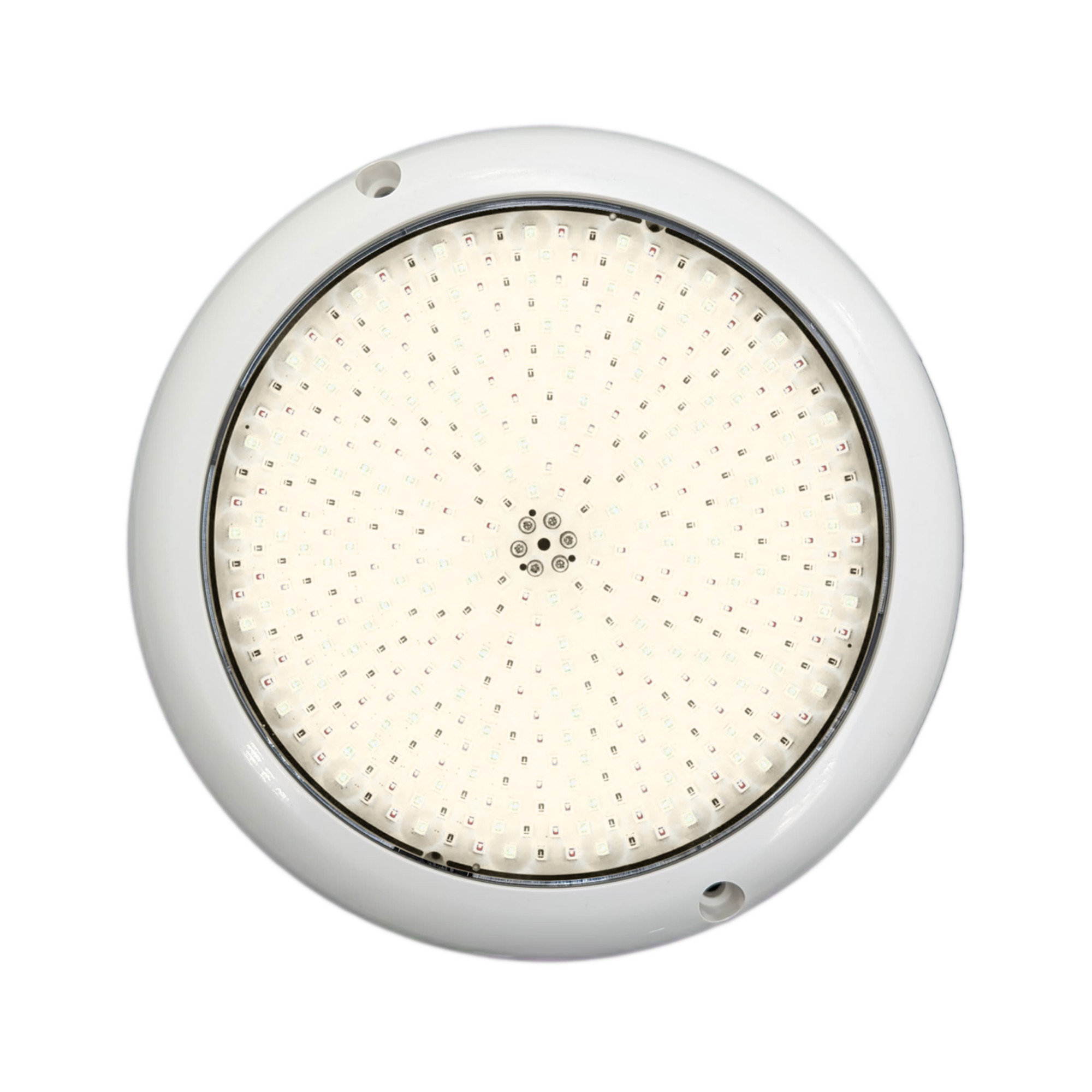 Lumière blanche homogène pour votre piscine avec un projecteur compact de Ø15 cm. Il fonctionne sur 12V AC et permet une installation rapide en surface avec une étanchéité IP68.