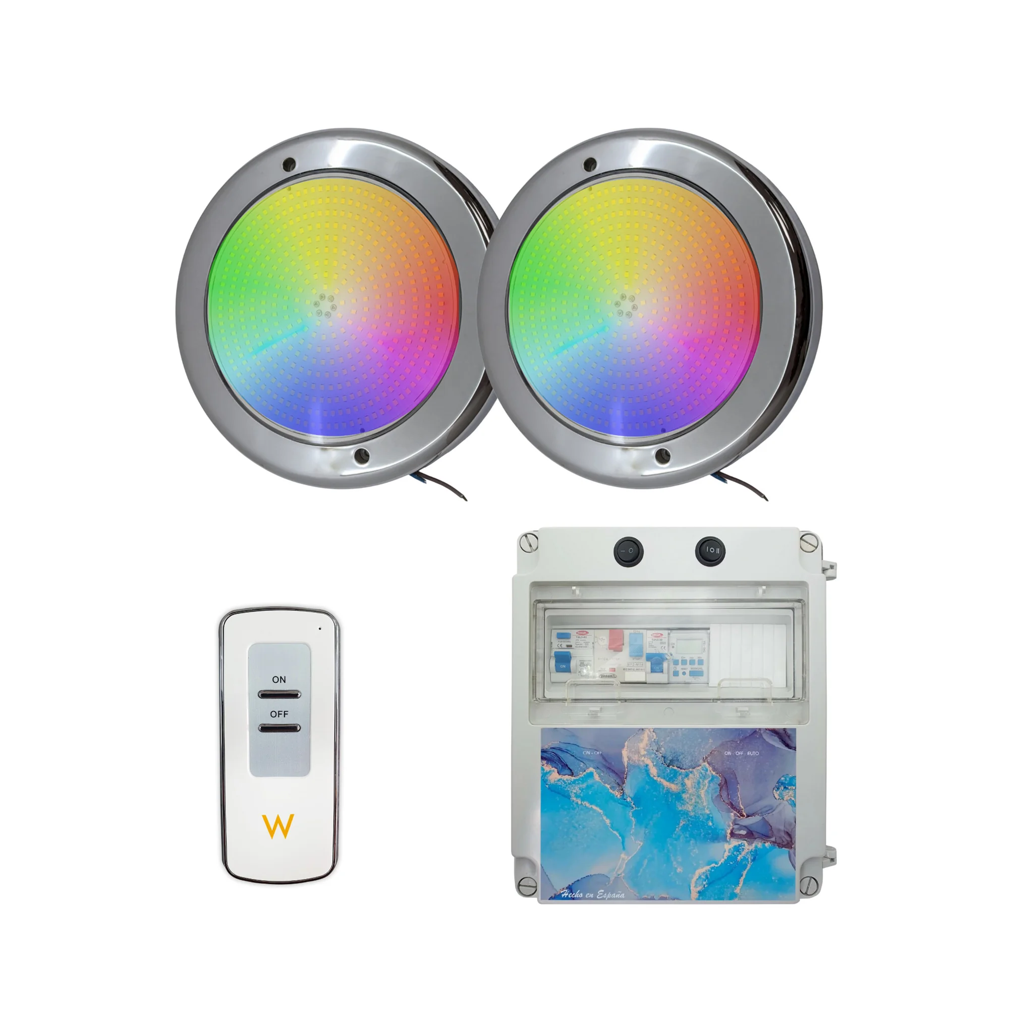 Pack 2 spots LED RGB ON/OFF 35W 12V AC en acier inoxydable avec panneau électrique