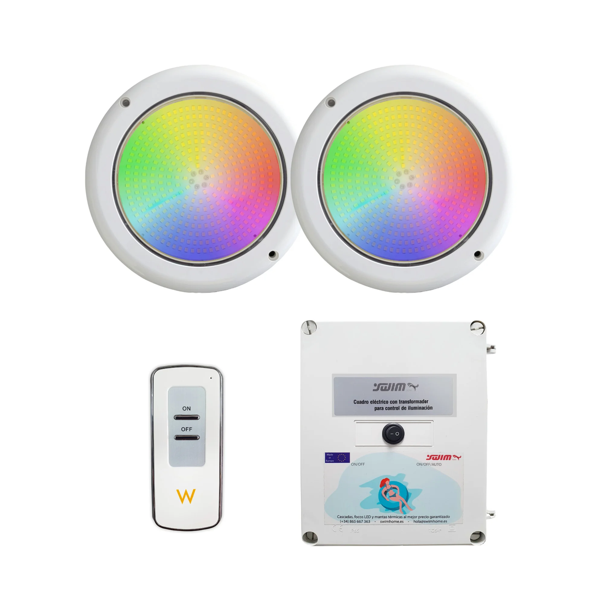 Découvrez l'éclairage du futur avec notre pack de 2 projecteurs de piscine à LED blanches de 30W avec transformateur et télécommande. Cet ensemble est la solution idéale pour ceux qui recherchent l'efficacité, la durabilité et le contrôle de l'éclairage de leur piscine.