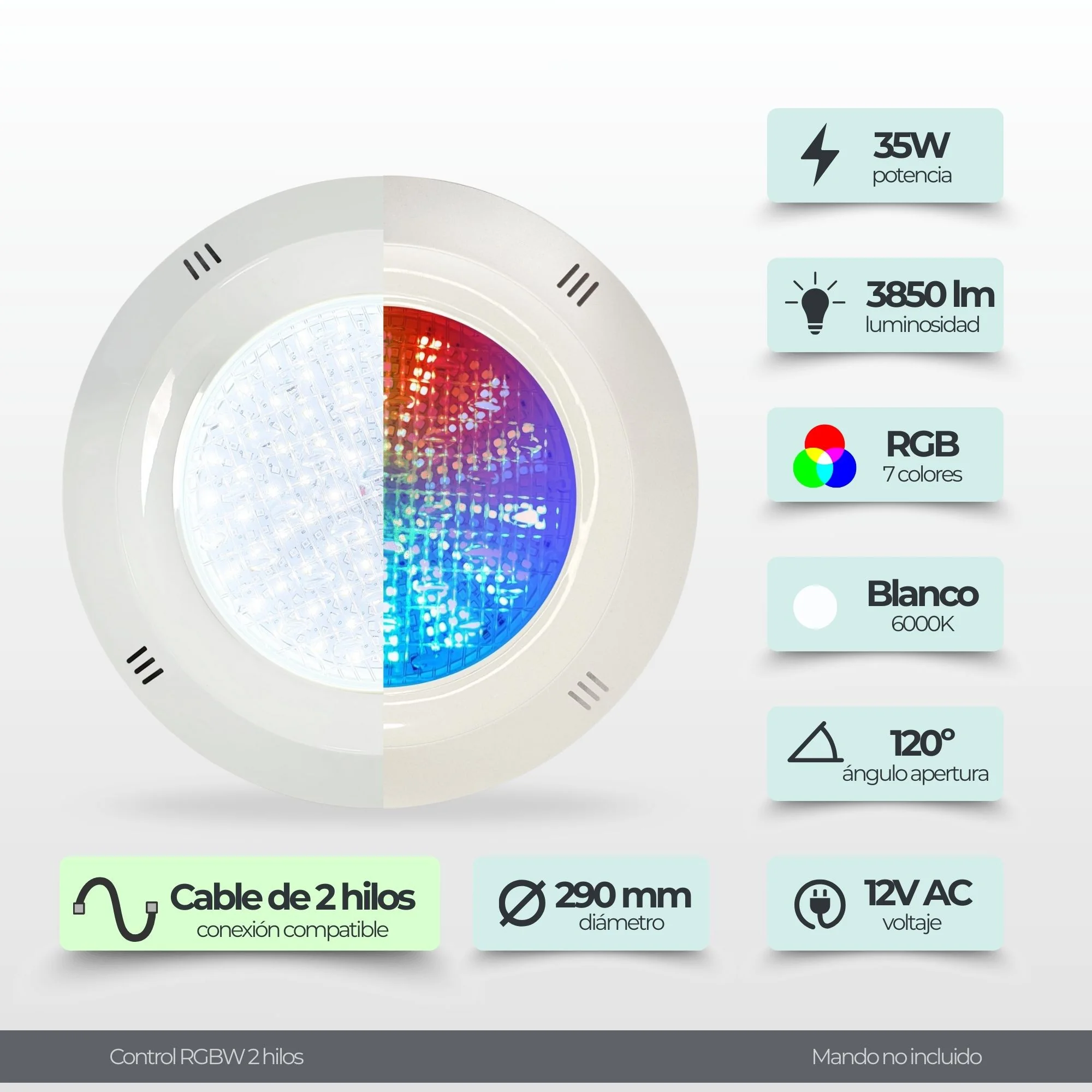 Transform your pool into a spectacle of light and colour with our 35W 12V AC RGB LED Pool Spotlight. This advanced lighting system is designed to enrich your experience, offering a range of 7 brilliant colours and automatic programmes that will change the way you view your pool. With easy wall surface installation and full control via an included remote control, adjusting the ambience of your pool has never been easier.