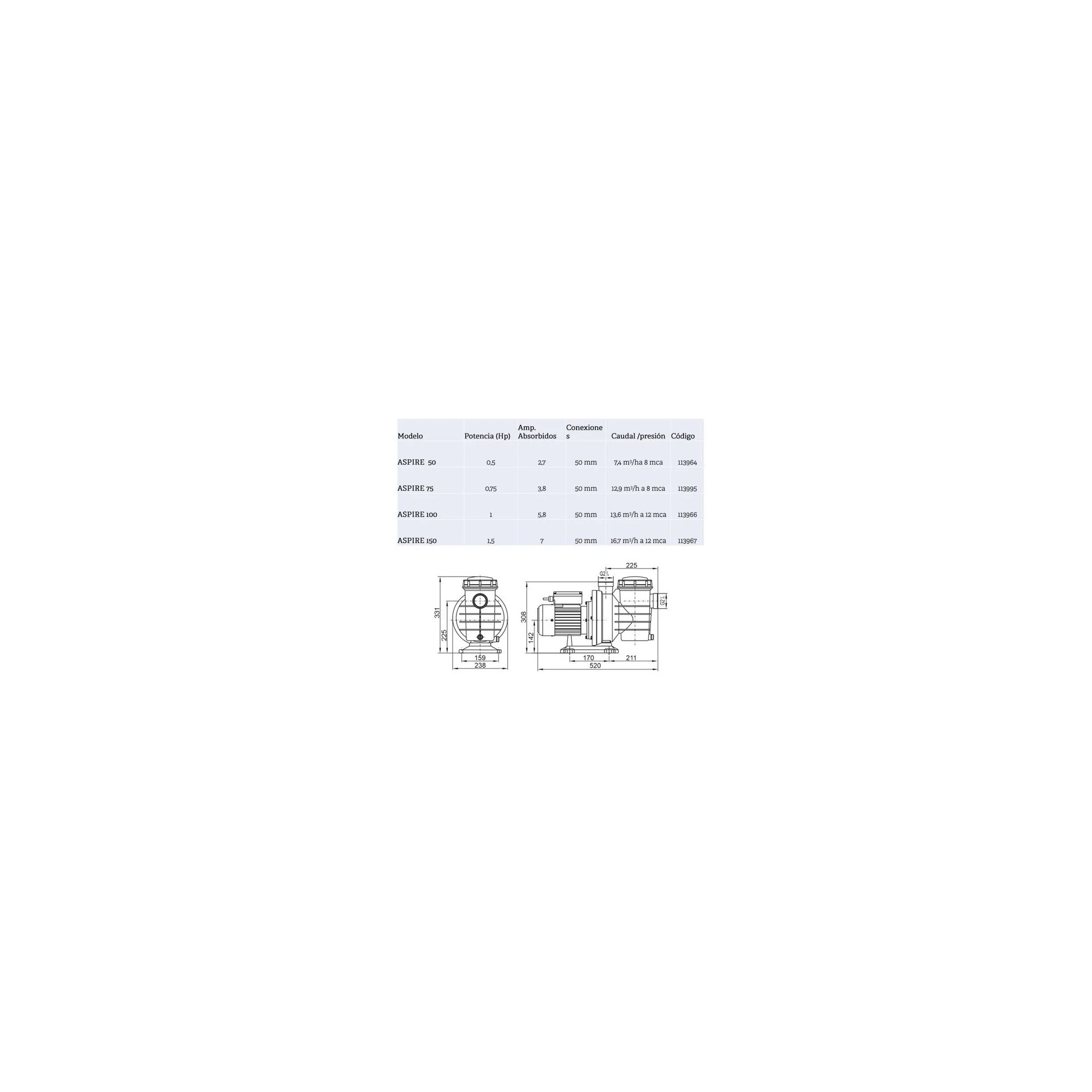 Swimming pool pump model Aspire 75 0,75CV Three-phase Outlet