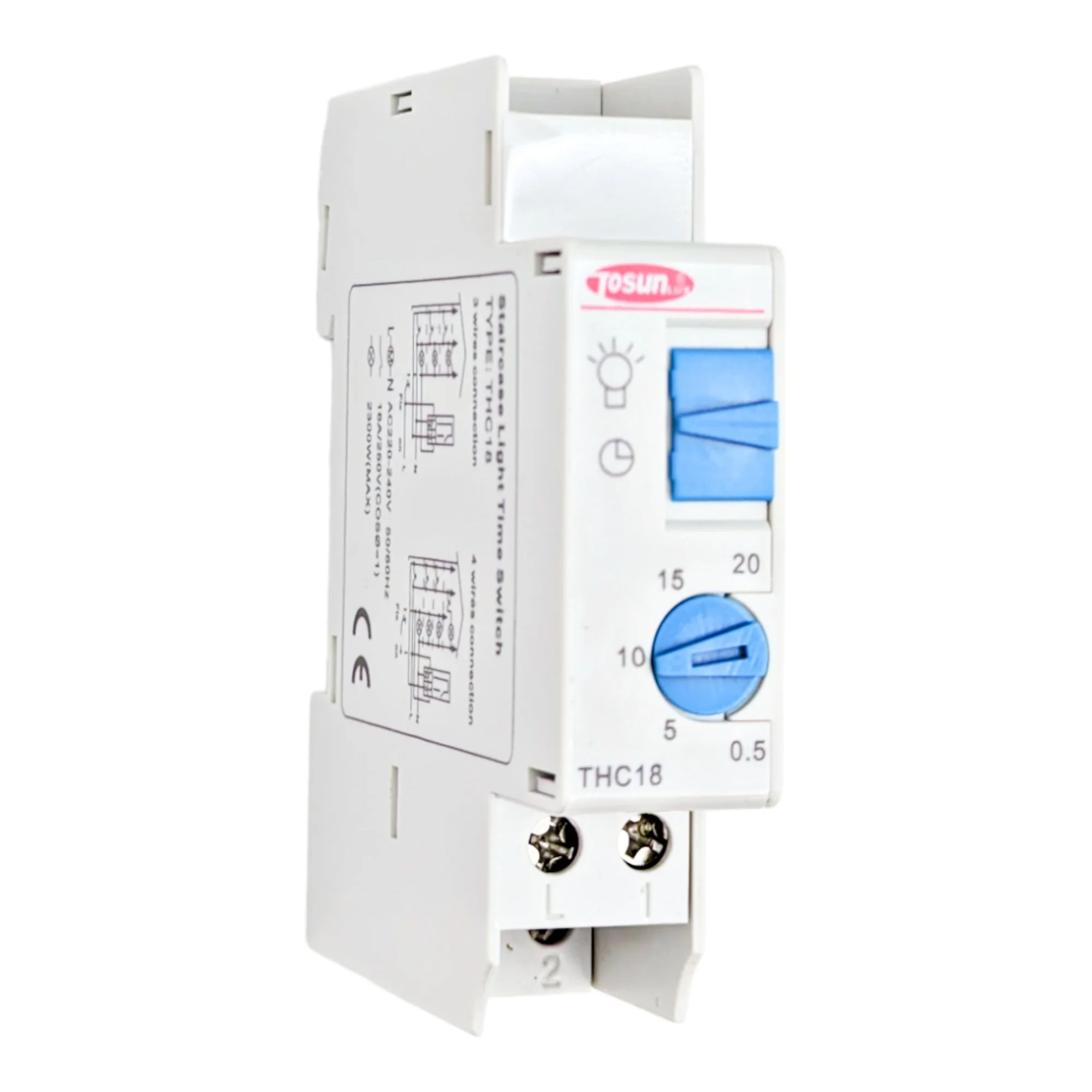 The THC18 Staircase Timer is an innovative solution designed for intelligent staircase lighting control, enabling efficient on/off time management. Essential for projects seeking to optimise energy use, this device offers a switching capacity of 16A and an adjustable time range of 0.5 to 20 minutes, making it a versatile tool for a wide range of applications.