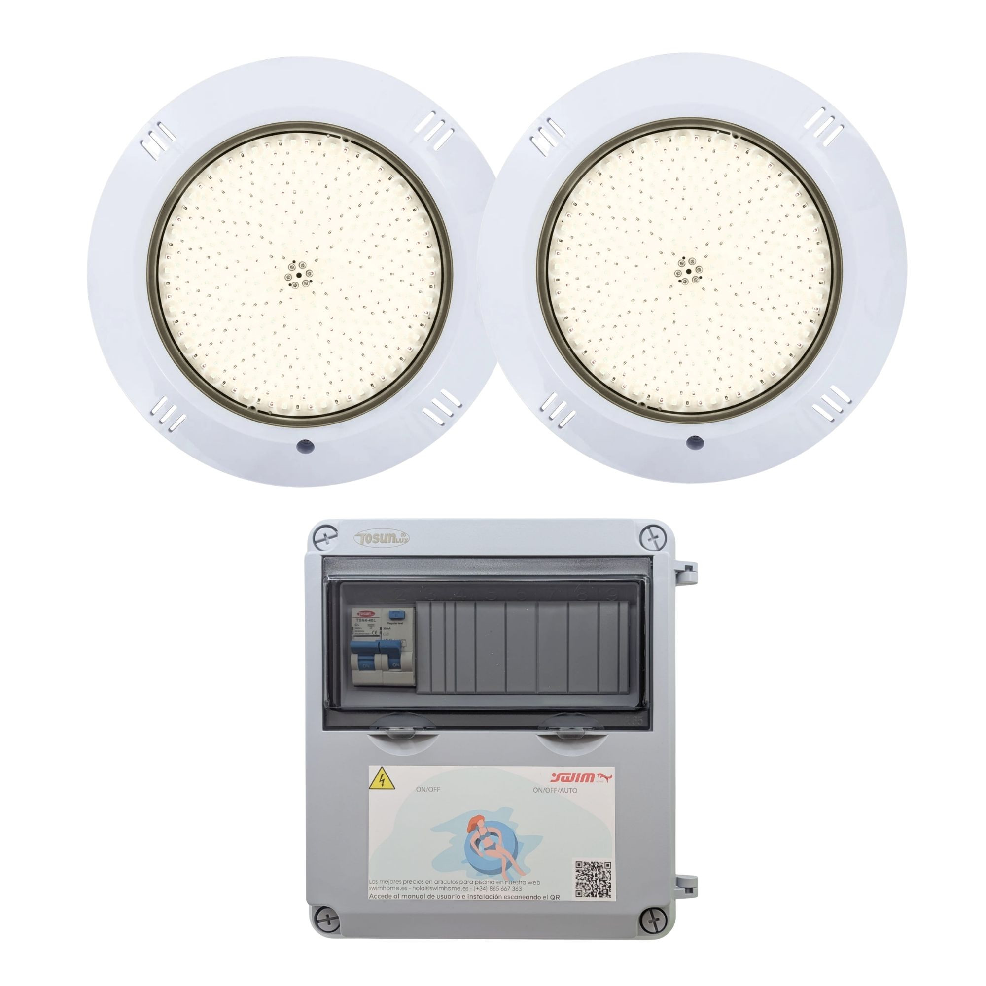 Each pack comes with a 12V AC transformer box with circuit breaker and differential, ensuring a safe and efficient electrical installation and trouble-free operation of the LED spotlights in your pool.