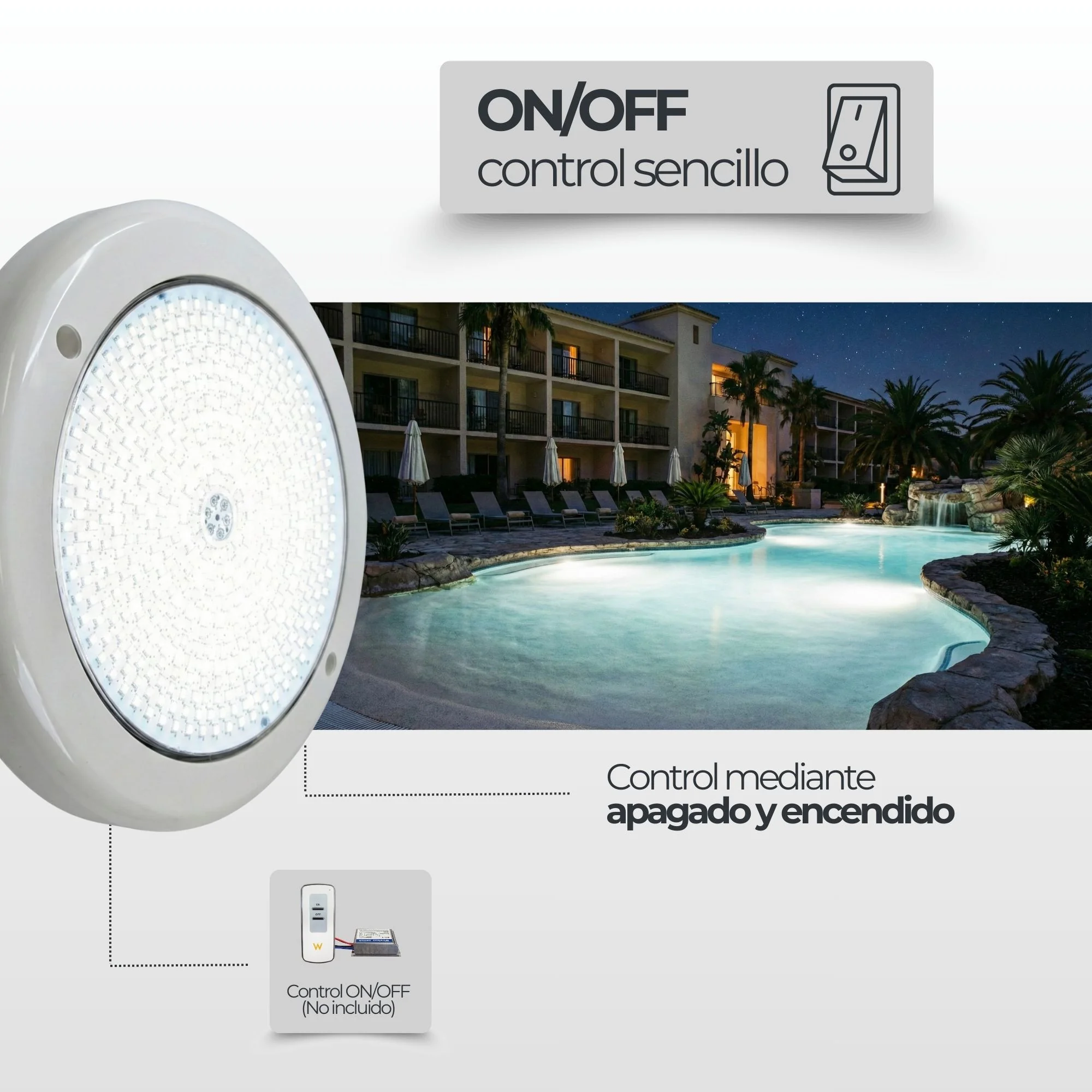 Thanks to the advanced Airless technology, this LED spotlight stands out for its exceptional watertightness. Completely filled with state-of-the-art resin, it prevents any possibility of water seepage, guaranteeing superior durability and performance, even in saltwater pools. This innovative technique also prevents yellowing and maintains the light's clarity over time.