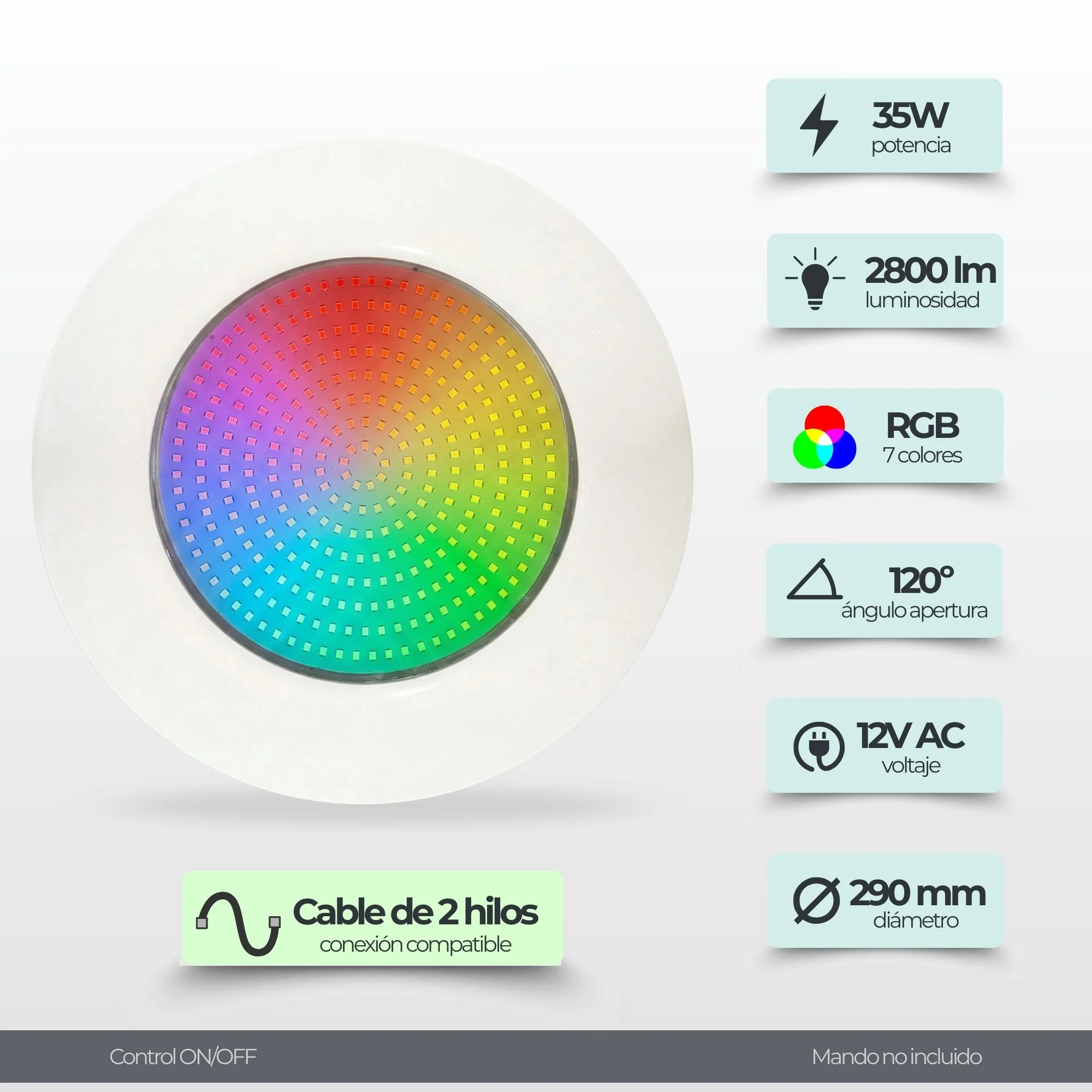 30W PAR56LED spotlight with floodlight for swimming pool niche. It is ideal for new installations or replacements of old halogen or LED PAR56 lamps. Its low consumption and its EPOXI resin filled system avoids the need to replace gaskets, and avoids breakdowns caused by flooding of the PAR56 housing. The new design is fully submersible, it can be completely wetted.