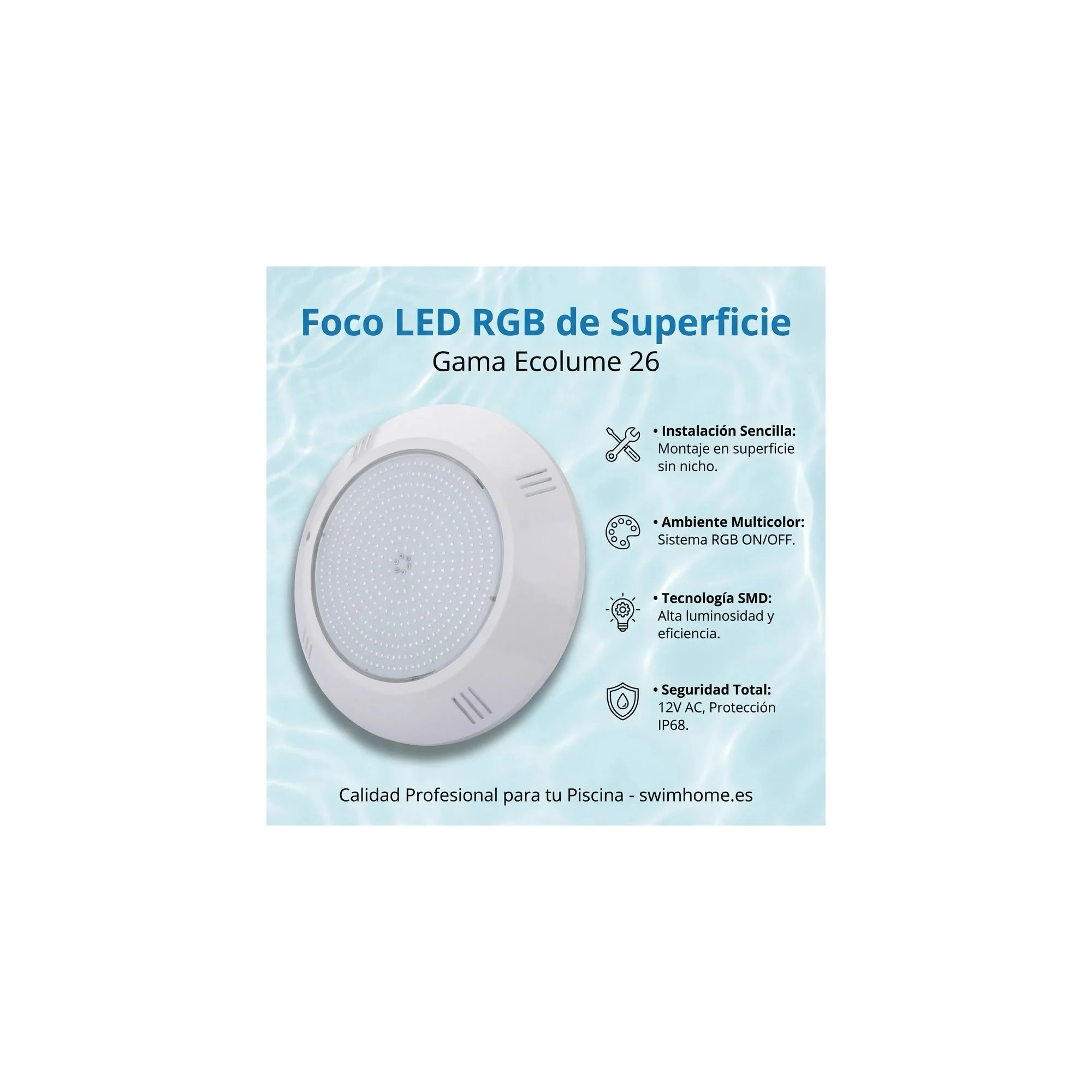 pretende renovar a iluminação da sua piscina sem obras complicadas e com a garantia de que não entrará água? O novo projetor LED Ecolume 35W combina uma emissão de luz profissional com a tecnologia mais segura do mercado: o enchimento de resina.
