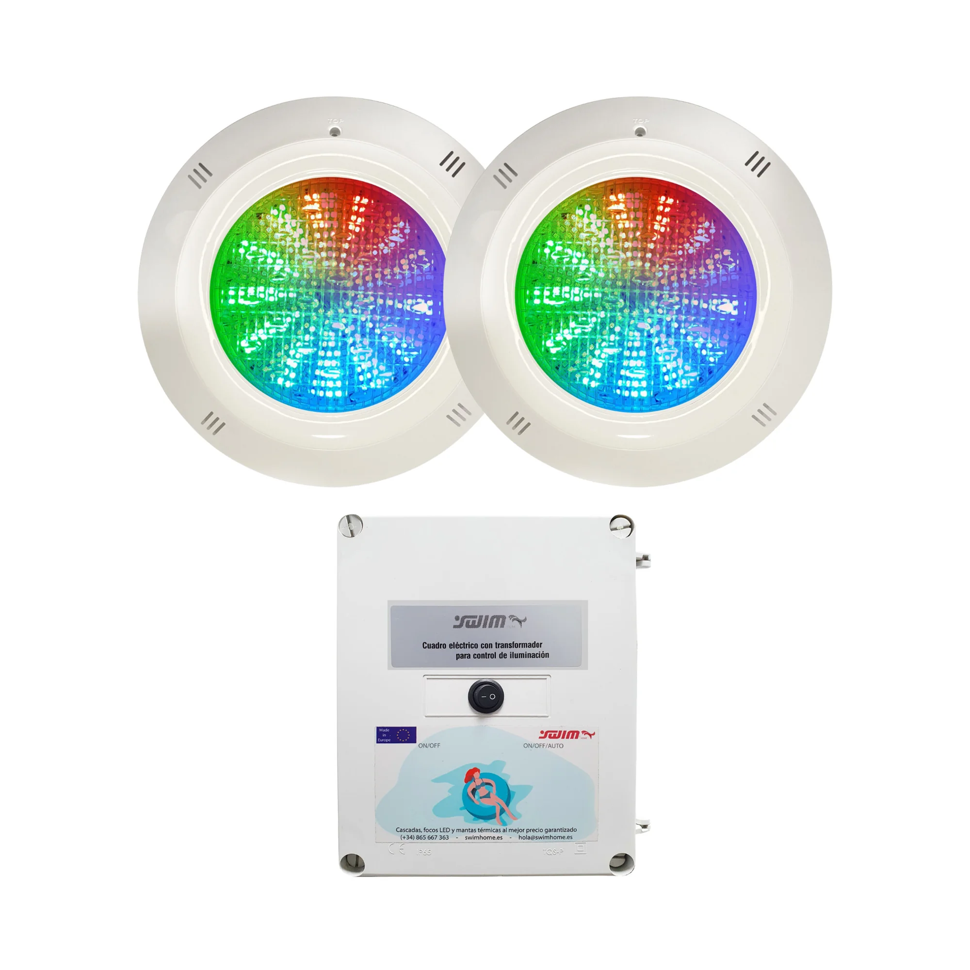 Cada pacote é fornecido com uma caixa de transformador de 12V AC com disjuntor e diferencial, garantindo uma instalação eléctrica segura e eficiente e um funcionamento sem problemas das luzes LED na sua piscina.