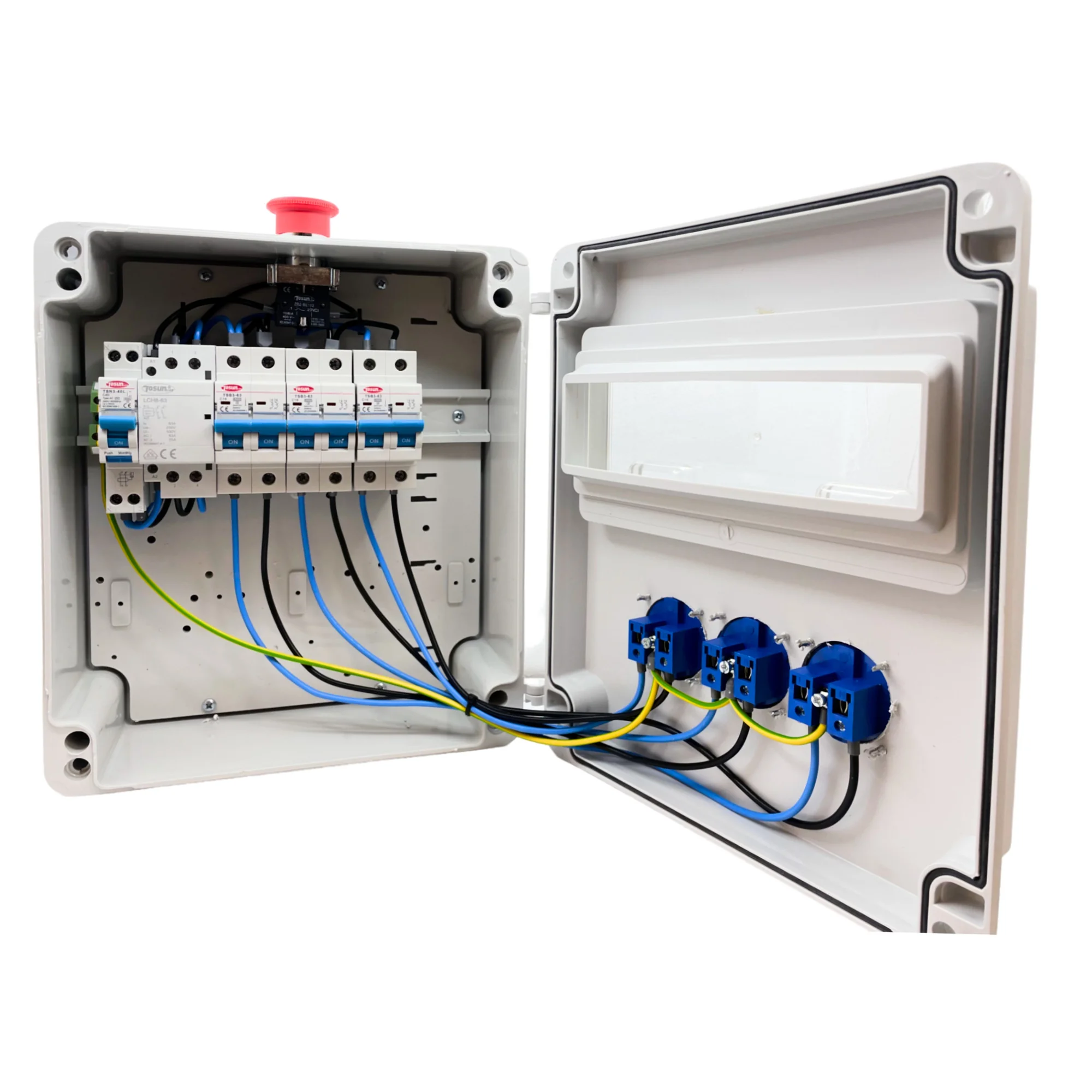 Graças ao seu design pré-montado e à montagem num invólucro IP65, o painel elétrico oferece uma instalação rápida e fácil. A sua compatibilidade com tomadas do tipo F torna-o versátil para uma vasta gama de aplicações, fornecendo uma solução plug-and-play para fornecimento imediato de energia.
